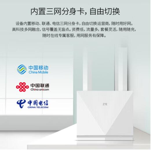商品名称:中兴4g cpe无线免插卡三网切换路由器